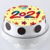 - This New Year 2021 Chocolate Photo Cake is hand delivered in a good quality cardboard box.